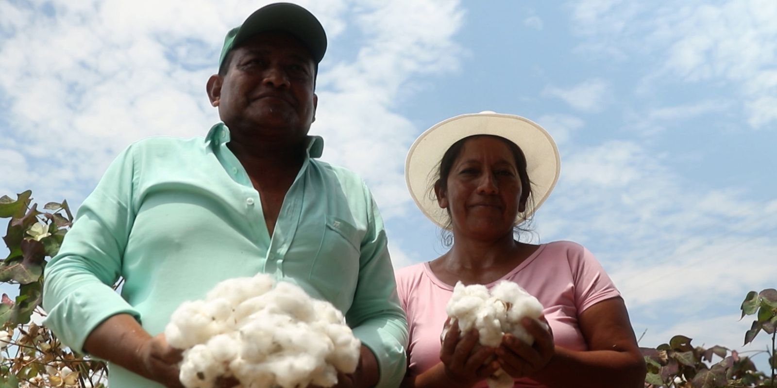 Na região de Tolima, em um vale da Cordilheira dos Andes. as indígenas do povo pijao Oneida Collazos Payanene e Eliza Fernanda Liz Pietro já cultivam o próprio algodão. Elas foram selecionadas para participar de capacitações de cultivo oferecidas gratuitamente pelo +ALgodão. “Isso é uma mudança de vida muito bonita, tanto para a comunidade como para nós, porque nos beneficia em sermos lideranças, em perder o medo de dirigir, empoderar como mulheres indígenas, e obter ganhos monetários e econômicos para nossas famílias”, afirma Elisa.