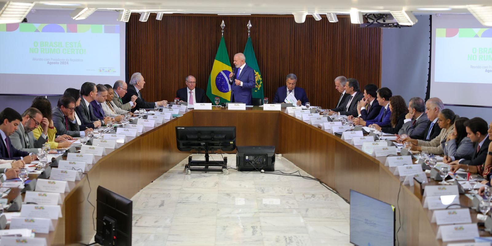 O presidente Lula lembrou a seus ministros que o governo definiu uma política única que deve balizar o trabalho dentro de cada pasta, que é o Novo PAC. “Quando nós pensamos em criar o PAC a primeira vez, e depois da segunda vez, e depois da terceira vez, era porque a gente precisava dar ao conjunto do governo um compromisso de trabalho para que a gente não ficasse à espera de que cada ministro pensasse a sua política própria, cada ministro atendesse a sua especificidade, e que a gente não tivesse um plano nacional de desenvolvimento”, explicou Lula.