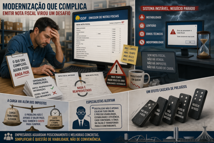 Empresários do Distrito Federal têm enfrentado uma nova onda de desafios ao tentar cumprir obrigações fiscais básicas. A promessa de modernização com o uso do emissor de notas fiscais disponibilizado pelo governo local acabou gerando frustração generalizada: o que já era considerado complexo tornou-se ainda mais difícil.