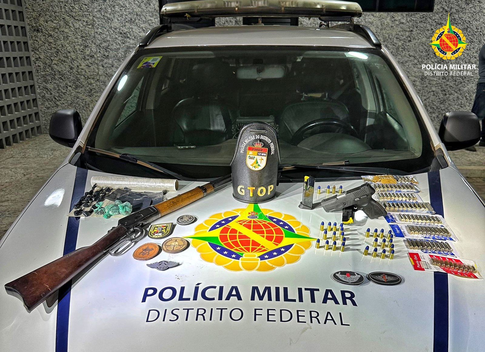 O caseiro da chácara negou que houvesse disparos no local, mas admitiu que havia recentemente comercializado armas de fogo. Ele indicou o comprador de uma das armas, que foi localizado pela PMDF. Com esse homem, foram apreendidos uma pistola calibre 9 mm, uma carabina calibre .38 e mais de 100 munições.