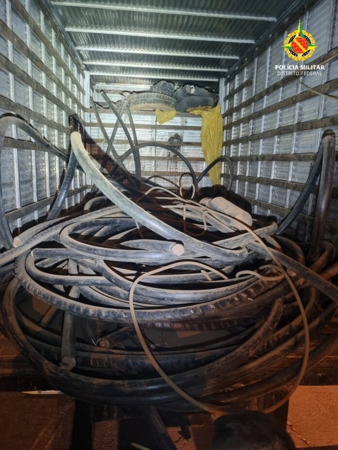 No local, próximo ao caminhão, os militares encontraram uma grande quantidade de fios que foram furtados durante a madrugada de hoje em Samambaia Sul. A vítima desta ocorrência, é uma empresa de telefonia e internet, será representada oficialmente.
