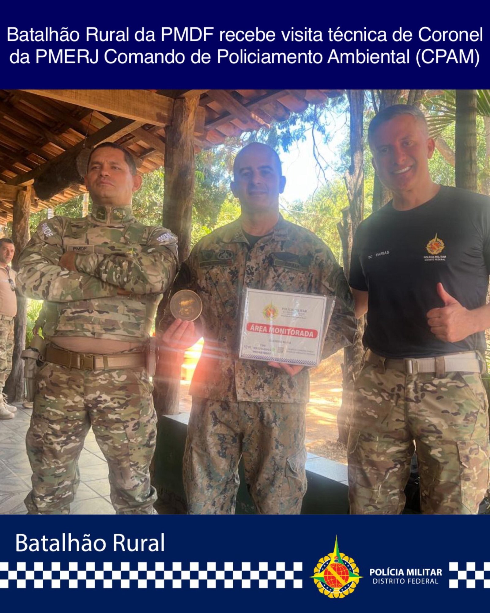A visita aconteceu na 3ª CIA RURAL, no IFB campus Gama. Na ocasião, o Oficial da PMERJ conheceu o Programa Guardião Rural da PMDF, o Centro de Comando, Controle e Monitoramento Operacional (C3RURAL) e um pouco mais sobre o Batalhão Rural.