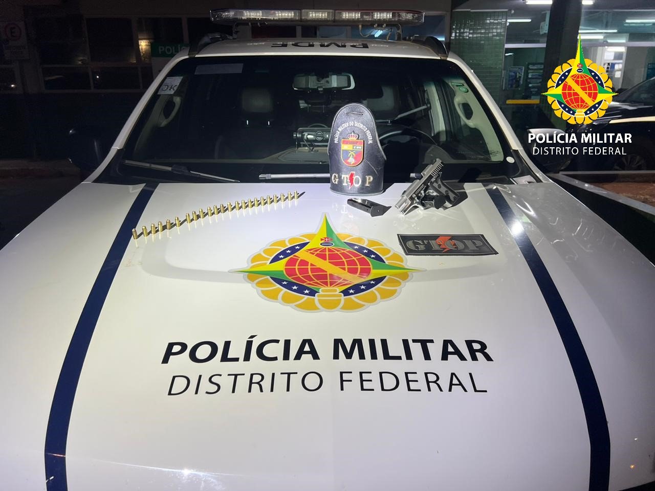 De acordo com o denunciante, o suspeito havia ingerido bebida alcoólica e agrediu fisicamente a vítima. Após as agressões, ela se escondeu em um quarto para fugir do suspeito. Na casa, os policiais do Gtop 29 localizaram uma pistola calibre 380, com dois carregadores e 23 munições intactas.