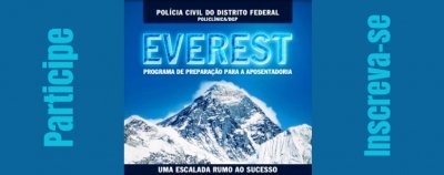 O Gabinete da Direção-Geral da PCDF (GABDG), por meio da Policlínica, convida os integrantes da carreira policial civil a participarem do Programa de Preparação para a Aposentadoria (EVEREST). O curso será realizado nos dias 17, 24 e 31 de outubro, e 7, 14 e 21 de novembro de 2025, sempre das 8h30 às 12h, no auditório do DPE.