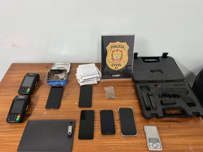 Apreensões: Três veículos de luxo, celulares, máquinas de cartão e uma pistola com carregador, até o momento.