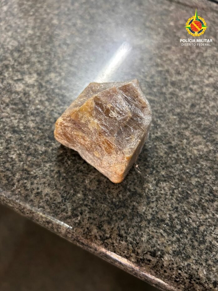 Policiais militares do 28º Batalhão prenderam em flagrante um homem portando uma pedra de 300g de crack dentro de um ônibus coletivo, às 16h desta quinta-feira (27), na Vila Telebrasília.