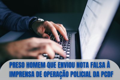 A Polícia Civil do Distrito Federal— PCDF, por intermédio da Delegacia Especial de Repressão aos Crimes Cibernéticos (DRCC), prendeu em flagrante um homem, de 26 anos, que produziu e veiculou nota falsa à imprensa de operação policial que nunca foi realizada pela PCDF. A ação ocorreu na tarde dessa quinta-feira (1º).