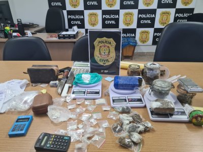 Em cumprimento ao mandado de busca e apreensão (MBA) expedido pela Justiça, os policiais realizaram buscas na residência do traficante, onde localizaram porções maiores das mesmas drogas, quatro balanças de precisão, contabilidade do tráfico, máquina de cartões e diversos apetrechos utilizados para a traficância. Diante das provas, a dupla foi presa em flagrante por tráfico de drogas e receptação.