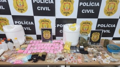 As equipes se dirigiram, então, ao endereço do esconderijo da droga, em Valparaíso/GO, onde foram encontrados diversos entorpecentes em grande quantidade. Foram apreendidos mais de 5 mil comprimidos de ecstasy, grande quantidade de cristais de MDMA, 40 litros de lança perfume artesanal, haxixe, LSD e grande quantidade de skunk, além de balanças de precisão, uma arma de fogo tipo revólver, municiada, e dezenas de munições calibre .9mm.