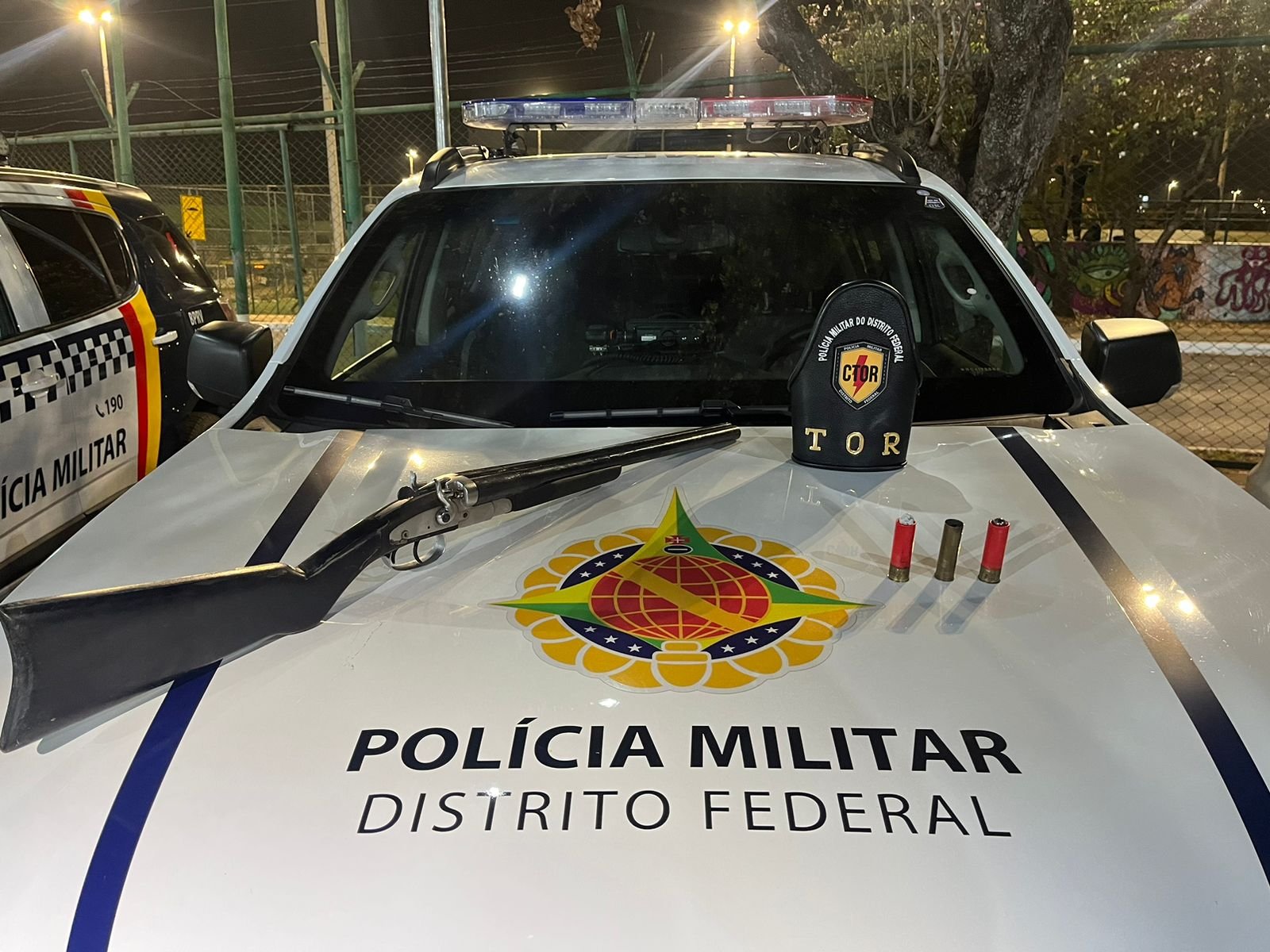 Foi apreendido uma escopeta 12 gauge, com três munições.