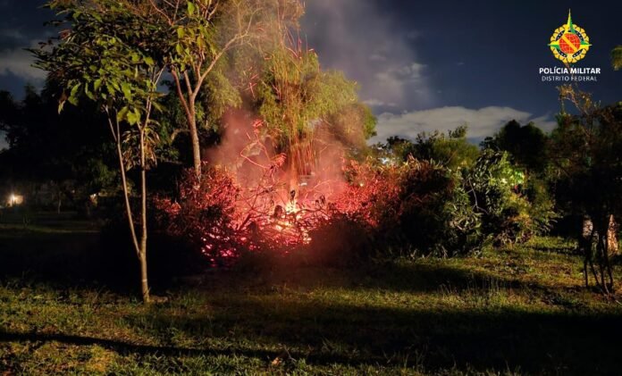 Os policiais foram chamados para uma situação de atividades de supressão de vegetação e queima de material no Altiplano Leste. No local, foi confirmado que se tratava de manejo em vegetação lenhosa exótica, sendo utilizado quatro motosserras sem as devidas Licenças de Porte e Uso (LPU). Além disso, o ato de queimar o material resultante estava gerando uma considerável quantidade de fumaça na vizinhança.
