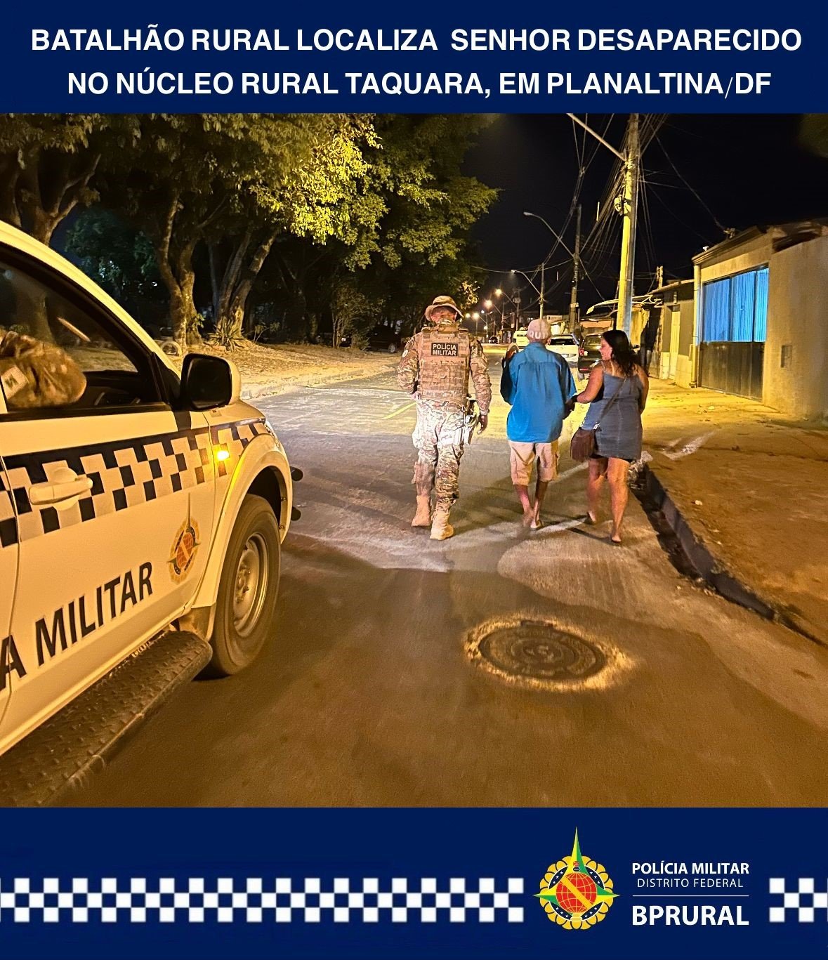 Uma cidadã informou que um idoso de 83 anos, estava vagando pela DF 230, aparentando desorientação. Após acolhê-lo e verificar seu nome, os policiais se deslocaram para sua residência no Setor Buritis II, a cerca de 20 km do local onde foi encontrado.