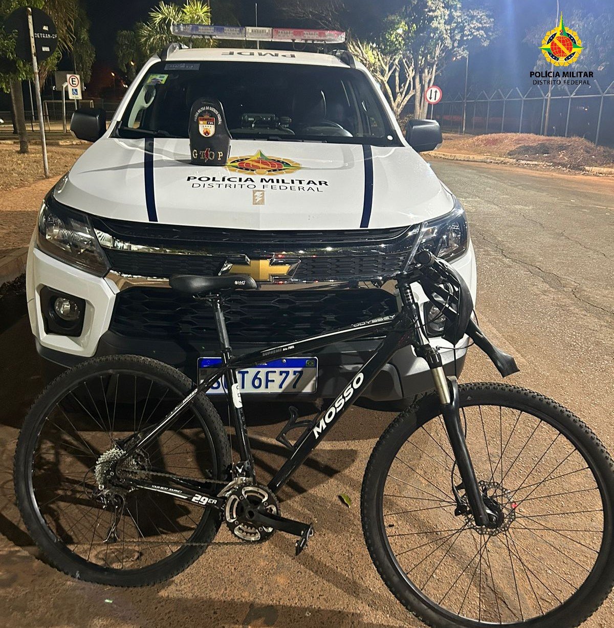 Chegando ao local, o homem foi abordado e encontrava-se em posse de uma bicicleta preta com o pneu traseiro furado. O autor foi reconhecido, por ter sido detido pela PMDF, naquela tarde, por furtar uma bicicleta no metro do Guara II. Ao ser questionado sobre a origem da bicicleta e o motivo do pneu furado, apresentou respostas contraditas, confessando que havia furtado a bicicleta, há uma hora antes da abordagem, no condomínio Signature, localizado no Park Sul.