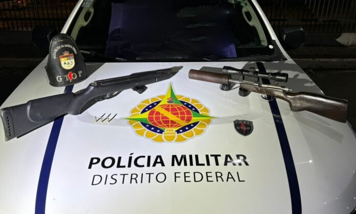 A equipe do Gtop 40 recebeu uma denúncia informando que um homem mantinha armas de fogo em uma oficina de lanternagem no Setor Habitacional Mestre D’Armas, em Planaltina. Os policiais foram ao local checar a denúncia e apreenderam dois rifles calibre 22 e três munições do mesmo calibre. O detido foi levado à 16ª Delegacia para registro da ocorrência.