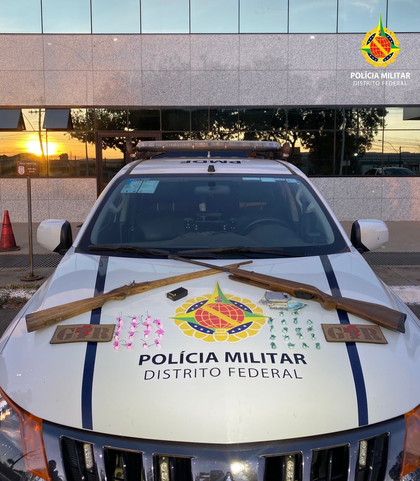 Além disso, foi apreendido na posse do homem uma carabina cal.22, uma espingarda de fabricação artesanal, 33 porções de droga, cinco munições cal.22, aproximadamente 150kg de carne bovina e R$ 204,00 reais.