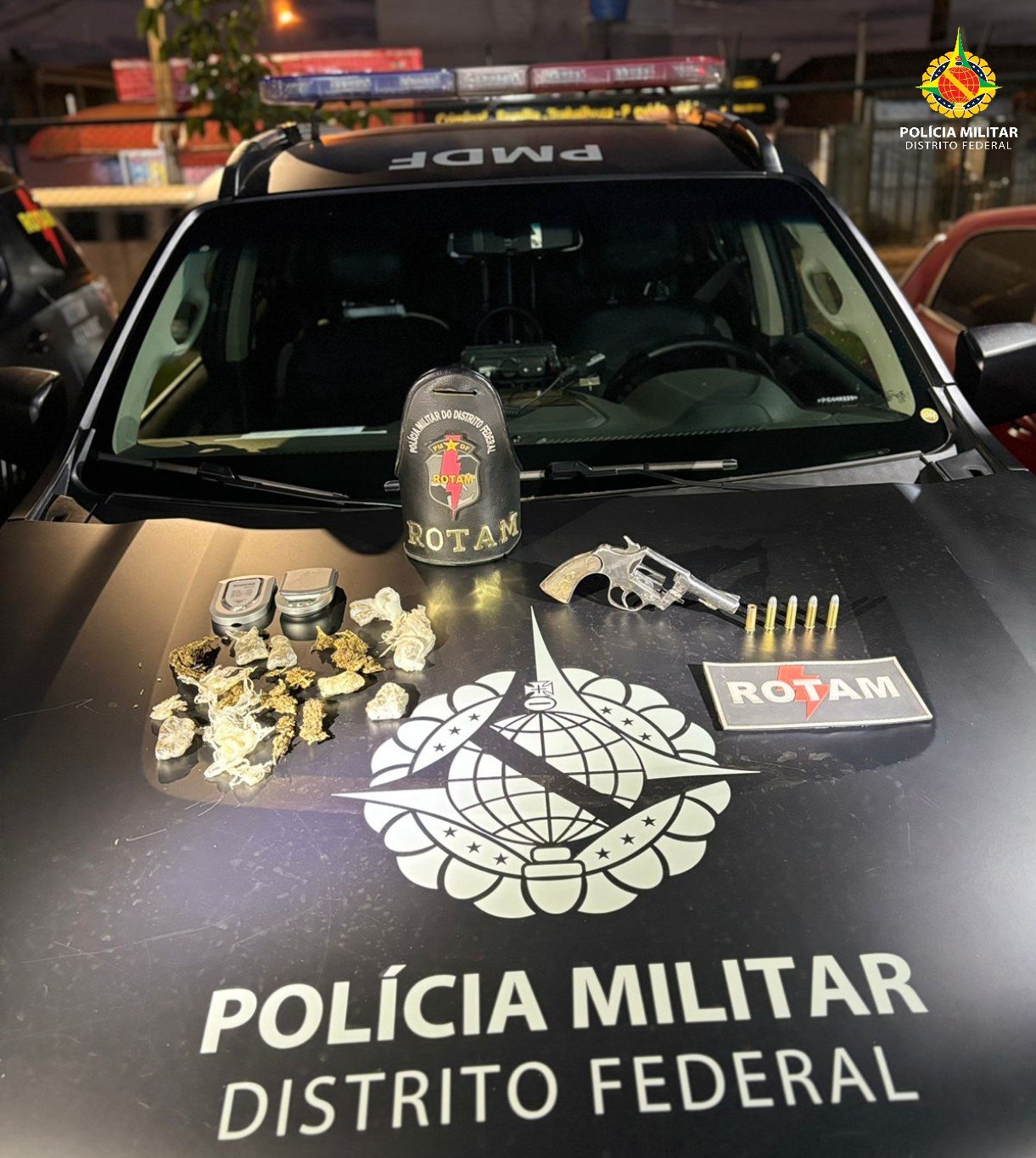 Houve resistência do homem, mas foi contido pelos policiais militares. Foi apreendido uma arma de fogo, revólver .38, com duas munições intactas, duas munições picotadas e uma deflagrada.
