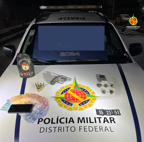 Na noite desta quarta-feira (5/06), por volta das 22h30, a equipe do Grupo Tático Operacional (GTOP 34) do 14° Batalhão da Polícia Militar do Distrito Federal (PMDF) prendeu um homem por posse ilegal de arma de fogo e tráfico de drogas, no bairro Mestre D’armas Mod. 05, em Planaltina/DF.