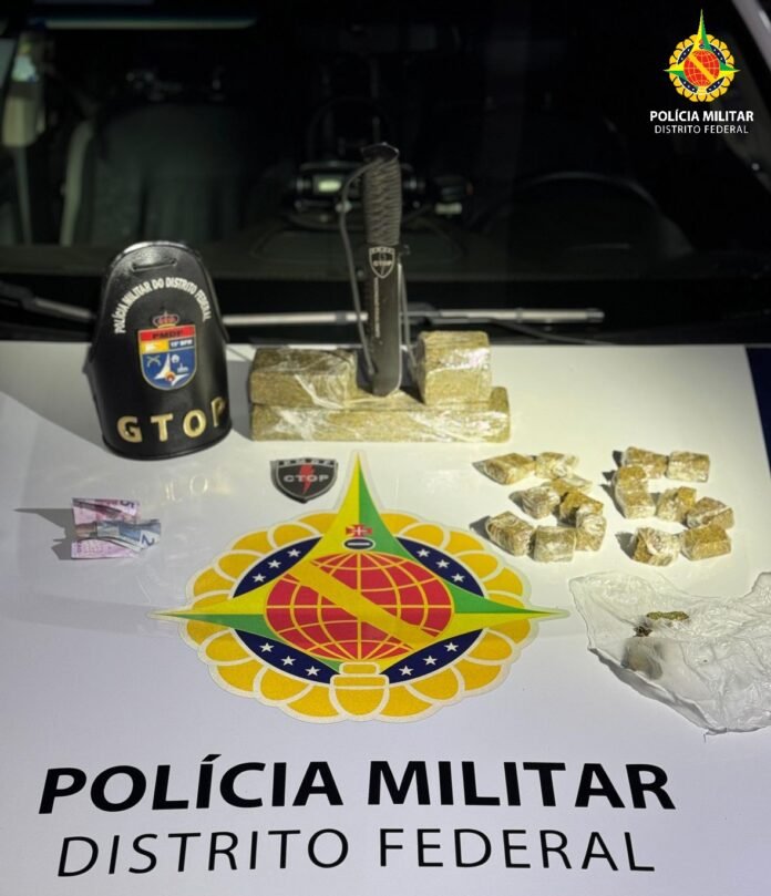 A Polícia Militar prendeu um homem por tráfico de drogas, neste domingo (2), na quadra 2, conjunto 7, na Cidade Estrutural.