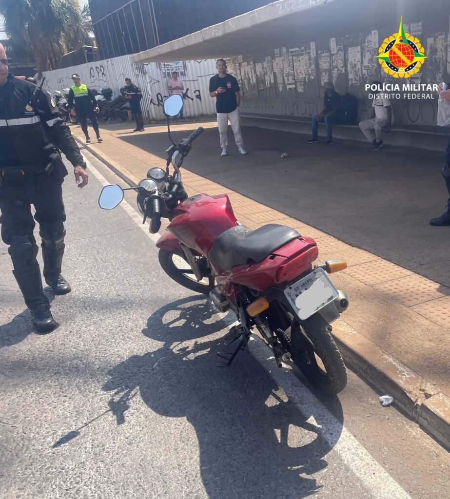 Nesta terça-feira (24), durante uma operação realizada pelos motociclistas do Batalhão de Trânsito (BPTran) nas proximidades da Feira dos Importados – SIA, uma motocicleta da marca DAFRA foi abordada para fiscalização. Durante a inspeção, os policiais constataram que o chassi da moto estava raspado, levantando suspeitas de adulteração.
