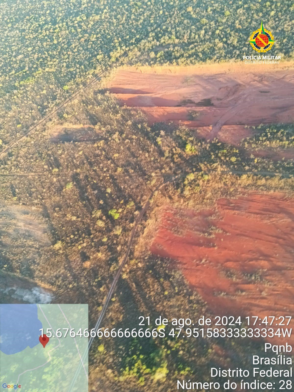 Durante o sobrevoo na região do Lago Sul, foram identificados pontos que aparentam ocupação irregular do solo em áreas de cerrado. Esses locais serão analisados com mais detalhes por equipes do Batalhão de Polícia Militar Ambiental (BPMA) em uma futura operação terrestre. Além disso, foram observados focos de queimadas na área do Parque Nacional, nas proximidades de Brazlândia, mas não houve flagrante no momento do patrulhamento.