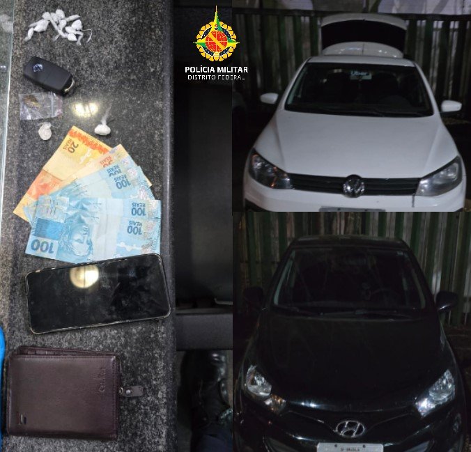 Durante a tarde de sábado, na QNN 19 de Ceilândia, uma equipe de Rádio Patrulhamento do Oitavo Batalhão de Polícia Militar obteve um resultado significativo no combate ao tráfico de entorpecentes ao efetuar a prisão de dois indivíduos que estavam traficando drogas utilizando dois veículos. Um dos traficantes era motorista de aplicativo e associava-se ao outro traficante para levar usuários até o local de compra de entorpecentes. Além disso, um deles estava em posse de R$470,00 e várias porções de cocaína.