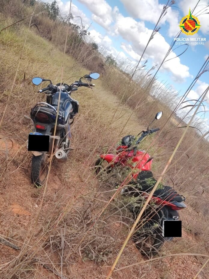 A motocicleta tinha acabado de ser furtada e o rastreamento indicava que o veículo estava na Quadra 508 do Recanto das Emas.  Os policiais foram até o local indicado e encontraram a moto camuflada em um local de mata fechada.