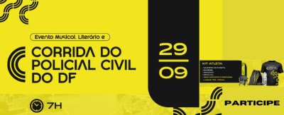 O Sindicato dos Policiais Civis do DF—Sinpol-DF promove, no próximo dia 29 de setembro, das 7h às 17h, no estacionamento 7, do Parque da Cidade, o Evento Musical, Literário e Corrida do Policial Civil do DF. A iniciativa, em parceria com a Secretaria de Estado de Cultura e Economia Criativa do DF (SECEC) e o Instituto Formando Campeões para a Vida (IFCV), busca integrar policiais, familiares e a comunidade em um dia de esporte, cultura e lazer.