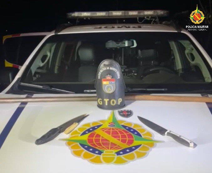 Um homem e um menor de idade foram detidos suspeitos de tentativa de homicídio na noite desta sexta-feira (5) em Santa Maria. Equipes do 26º Batalhão visualizaram, por videomonitoramento, o momento que a dupla esfaqueou vítima após uma discussão na parada de ônibus da QR 119.