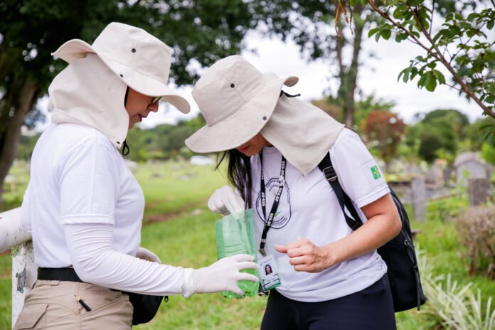 Agentes de Vigilância Ambiental em Saúde (Avas) da Secretaria de Saúde (SES-DF) realizaram uma inspeção no cemitério Campo da Esperança, na Asa Sul, em busca de focos do mosquito Aedes aegypti, transmissor da dengue, chikungunya, febre amarela e zika. A tarefa foi realizada nesta sexta-feira (10) e contou com o apoio da Secretaria de Justiça e Cidadania (Sejus-DF).