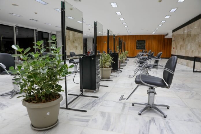 Tudo pronto no Palácio do Buriti para receber 30 renomados cabeleireiros do Distrito Federal; os profissionais vão oferecer cortes gratuitos em troca de doações de cestas básicas | Foto: Matheus H. Souza/Agência Brasília