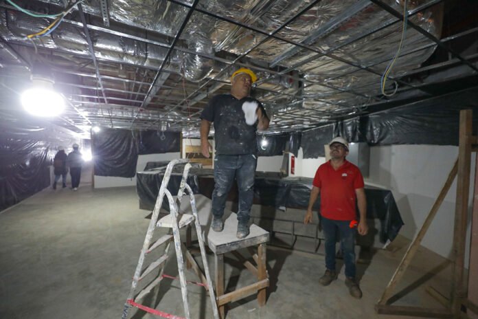 “Antigamente era como se fosse uma copa para recepções. Hoje, a Secec vem com a intenção de colocar um memorial no espaço. Estamos utilizando a sala como era antes, mantendo os balcões, mas com uma nova pintura e novos revestimentos”, explica a engenheira da Companhia Urbanizadora da Nova Capital (Novacap) e fiscal da obra, Daiana de Andrade.