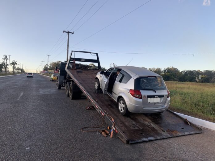 O mau estado de conservação do veículo, sem paralama dianteiro, chamou a atenção dos agentes de trânsito da Unidade de Operação Aérea (Uopa) do Detran. Ao realizar consultas, a equipe verificou que o último licenciamento foi pago em 2016.