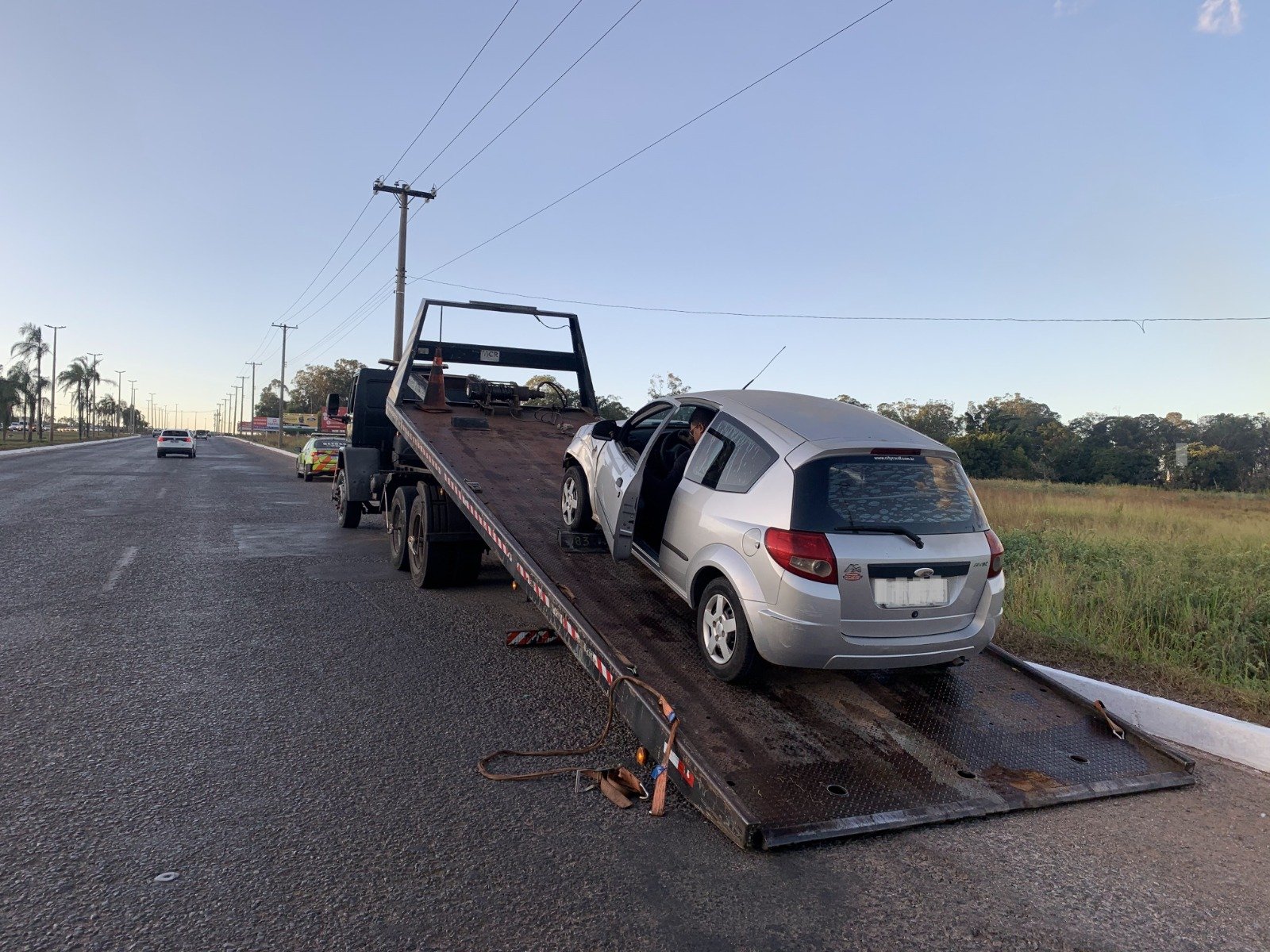 Ford Ka apreendido, que acumulava 733 infrações, foi removido para o depósito do Detran em Taguatinga | Foto: Divulgação/Detran