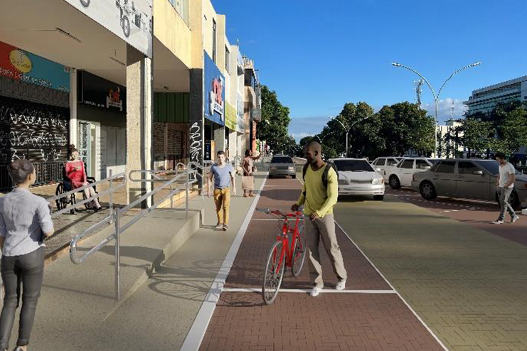 Além disso, são previstas travessias e plataformas elevadas para facilitar o percurso de pedestres e ciclistas que circulam diariamente entre as quadras, com a reconfiguração da via interna entre os blocos comerciais — conhecida como W3 e meia — como área sinalizada e compartilhada entre carros e pedestres, com velocidade máxima de 30 km/h, chamada de Zona 30. O objetivo é tornar a circulação mais segura para todos os transeuntes e veículos.