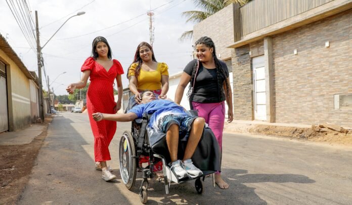 Residente da Chácara 142 A, a vigilante de 41 anos, ao ver a rua onde mora com a família pavimentada, não conteve a emoção e registrou em vídeo a felicidade de quem, pela primeira vez, pôde empurrar sem dificuldades a cadeira de rodas que o jovem usa diariamente para se locomover e acessar serviços básicos, como saúde e educação.