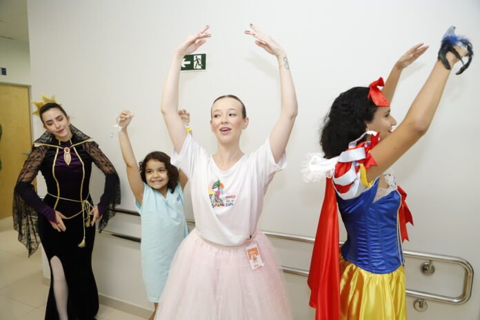 Alice Ferreira Cruz, 9 anos, esticava os braços e tentava seguir cada passo. A pequena paciente foi diagnosticada com hiperplasia adrenal congênita – uma doença que afeta as glândulas suprarrenais, responsáveis pela produção de hormônios. Sob a supervisão de princesas e vilãs bailarinas, Alice pôde experimentar a dança, dando uma pausa na internação após a cistoscopia (exame que verifica a bexiga e a uretra).