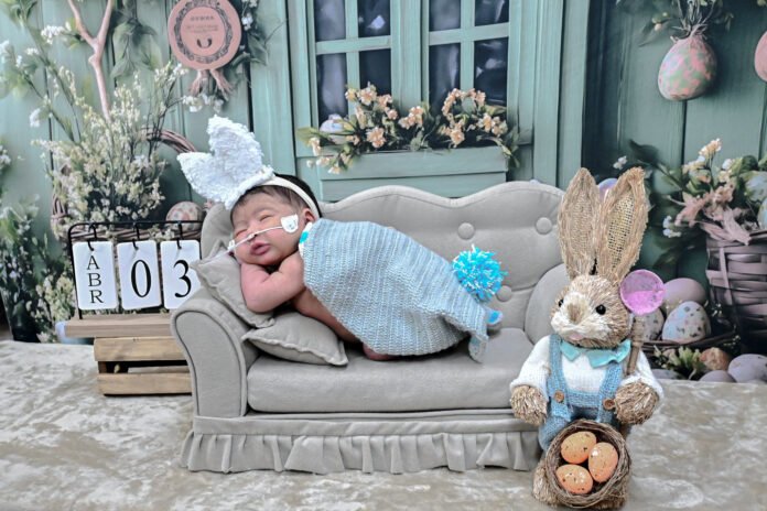 Bebês internados na Unidade de Terapia Intensiva Neonatal do HRSM fizeram ensaio fotográfico comemorativo da Páscoa | Foto: Tati Araújo