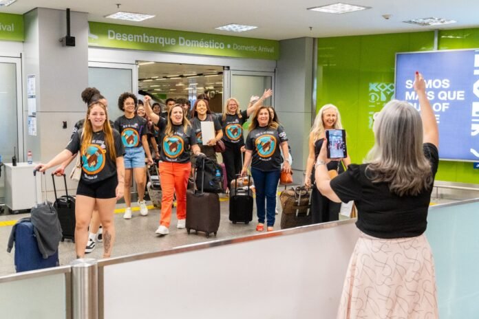 O grupo de 16 alunos do CEM 01 do Guará foi recebido no Aeroporto Internacional de Brasília pela secretária de Educação do DF | Fotos: André Amendoeira/SEEDF