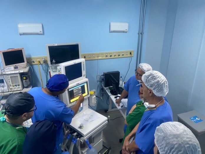“A atualização de ventiladores anestésicos no centro cirúrgico traz diversos benefícios significativos para a equipe médica, pacientes e até mesmo para a eficiência do hospital. Os aparelhos são modernos, oferecem controles mais precisos dos parâmetros ventilatórios, como volume corrente, pressão e fração inspirada de oxigênio (FiO2), permitindo uma adaptação mais individualizada às necessidades do paciente. Isso melhora a segurança, especialmente em pacientes de alto risco, possibilitando maior precisão”, explica o chefe do Serviço de Anestesia e Medicina Perioperatória, Aludean Branquinho.