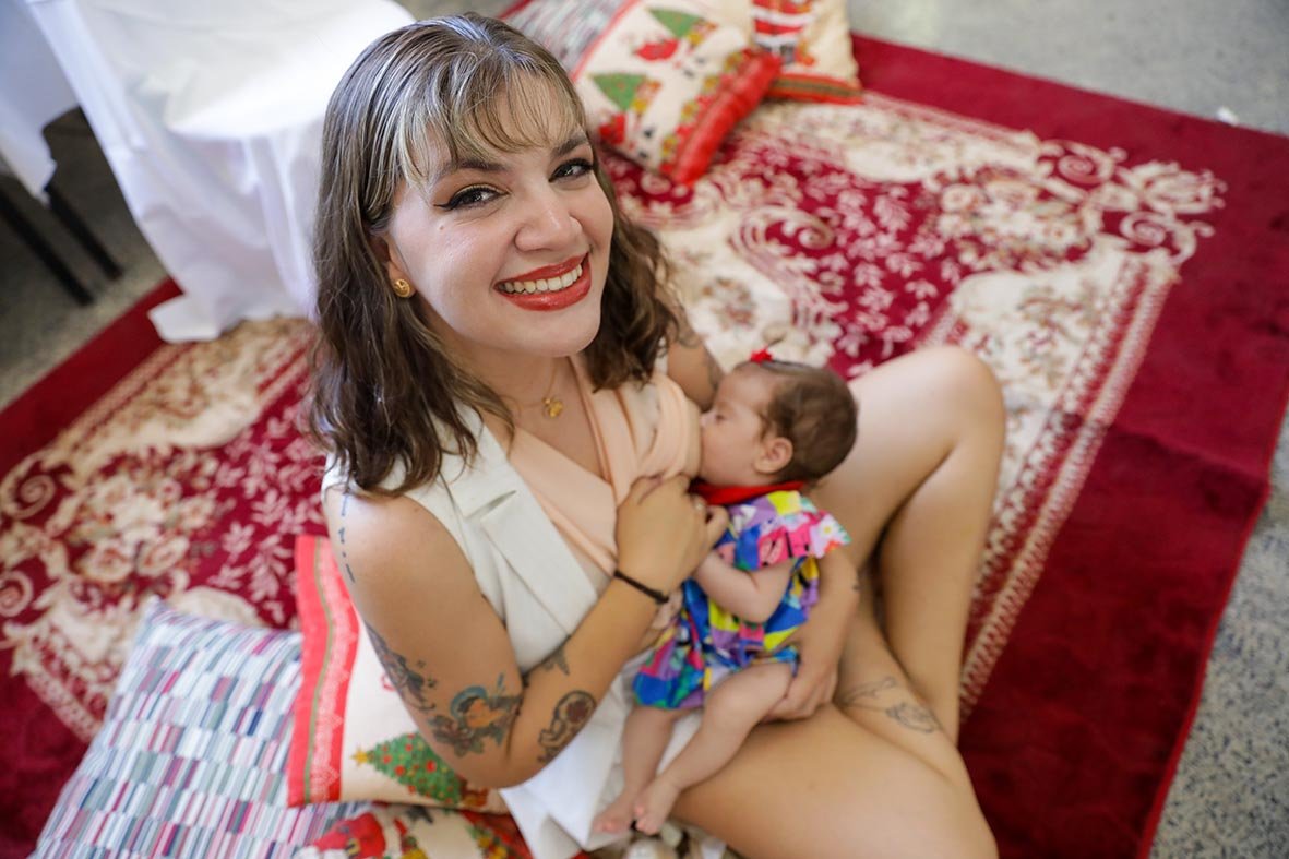 “Eu não sei o que seria da minha amamentação e da minha maternidade sem o banco de leite”, afirma ela. “A minha relação com a amamentação é de amor. É muito bom saber que você consegue nutrir o seu neném. Ele cresce e se fortalece porque você está ali se dedicando.”