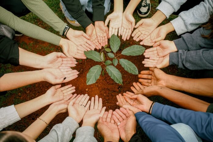 As crianças plantaram mudas de ipês-rosa para marcar a preservação do Cerrado