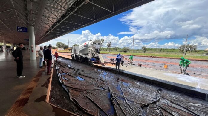 O novo pavimento de concreto trará benefícios a longo prazo para a estação, substituindo a antiga estrutura de piso intertravado, que já não suportava adequadamente o tráfego intenso de ônibus. O concreto utilizado nesta obra conta com fibras sintéticas, tecnologia que confere ainda mais resistência ao pavimento. Esse mesmo tipo de concreto também está sendo aplicado na pavimentação do trecho 6 da Estrada Parque Indústrias Gráficas (Epig).