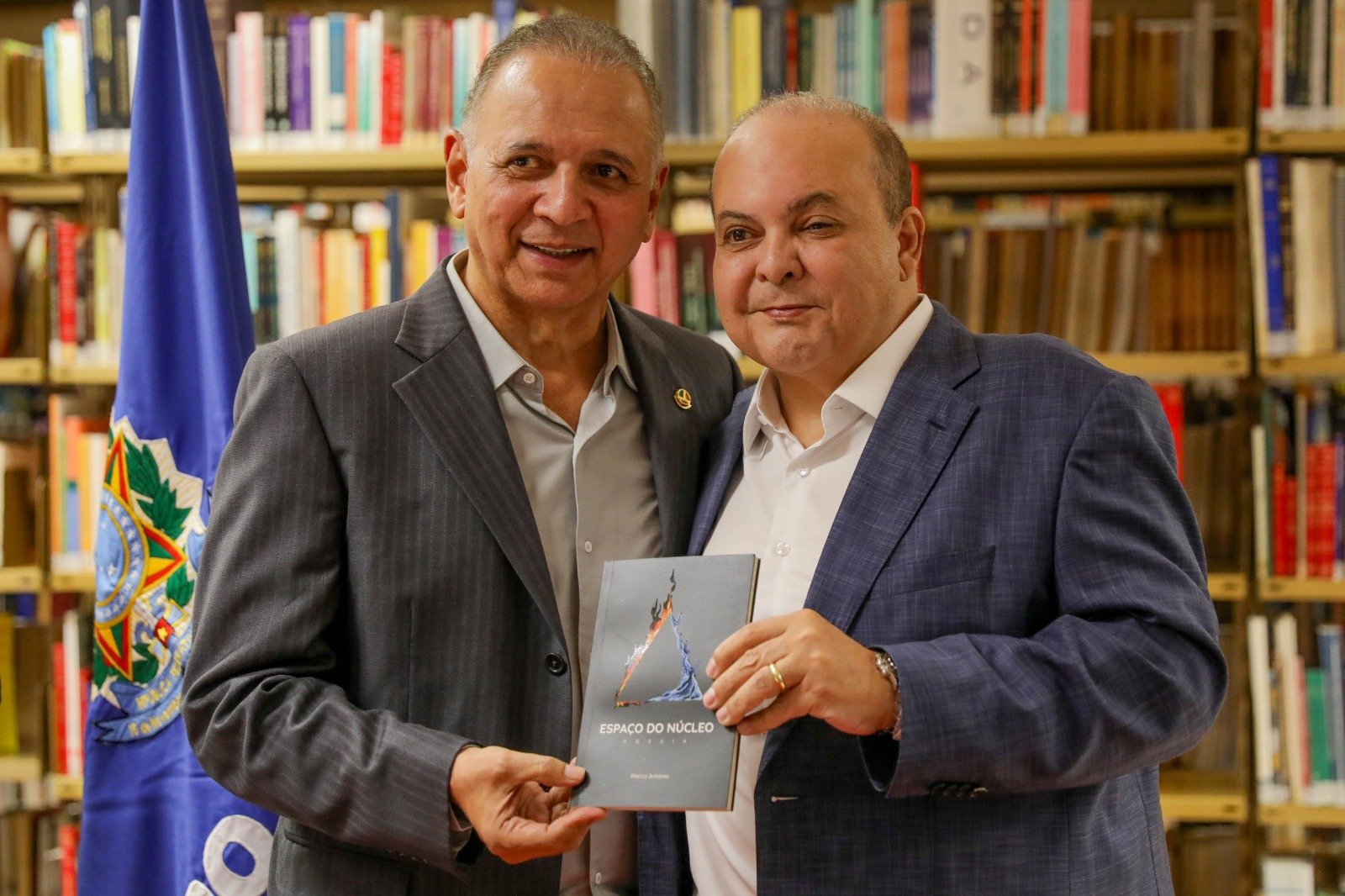 Empresários, congressistas e outras autoridades prestigiaram, na noite desta terça-feira (5), o lançamento do livro Espaço do Núcleo, do ex-senador Marco Antônio Costa, na Biblioteca do Senado Federal. Entre os presentes, estava o governador do Distrito Federal, Ibaneis Rocha, que é amigo pessoal do autor.