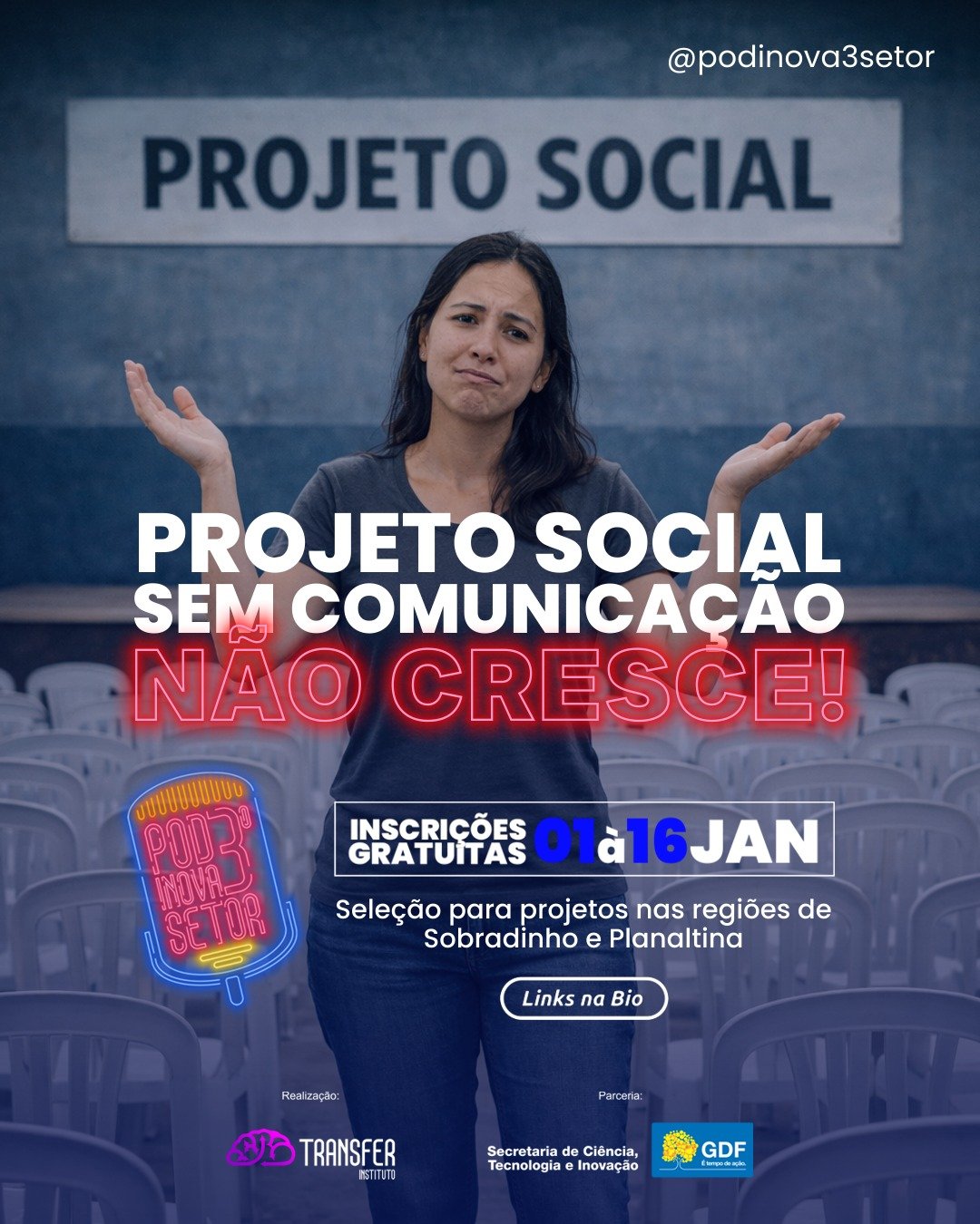 O Podcast Inova 3º Setor abre inscrições para organizações da sociedade civil interessadas em fortalecer sua atuação por meio da comunicação, da formação técnica e do uso estratégico das tecnologias digitais. A iniciativa tem foco prioritário nas regiões administrativas de Planaltina e Sobradinho e busca ampliar a autonomia institucional, a transparência e o impacto social das OSCs que atuam diretamente nos territórios.