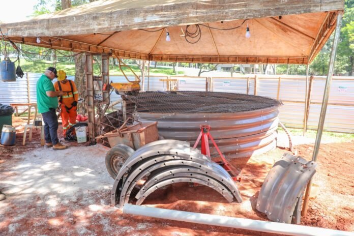 “Os túneis direcionados à saída da bacia de detenção já estão com tampa e escadas. Estamos com 80% dos PVs totalmente prontos”, afirma o diretor-técnico da Agência de Desenvolvimento do Distrito Federal (Terracap), Hamilton Lourenço Filho.