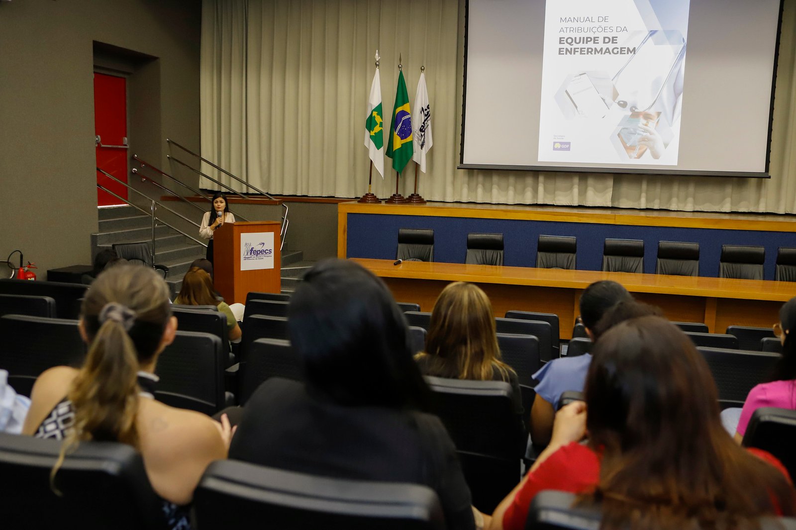 A Secretaria de Saúde do Distrito Federal (SES-DF) apresentou, nessa terça-feira (3), a segunda edição do Manual de Atribuições da Equipe de Enfermagem. O documento detalha as funções de enfermeiros, técnicos e auxiliares de enfermagem na Atenção Hospitalar da rede pública, alinhando as práticas às diretrizes do Sistema Único de Saúde (SUS). O evento, realizado no auditório da Fundação de Ensino e Pesquisa em Ciências da Saúde (Fepecs), reuniu gerentes, supervisores e enfermeiros da pasta, e contou com a participação de representantes do Conselho Regional de Enfermagem (Coren-DF).