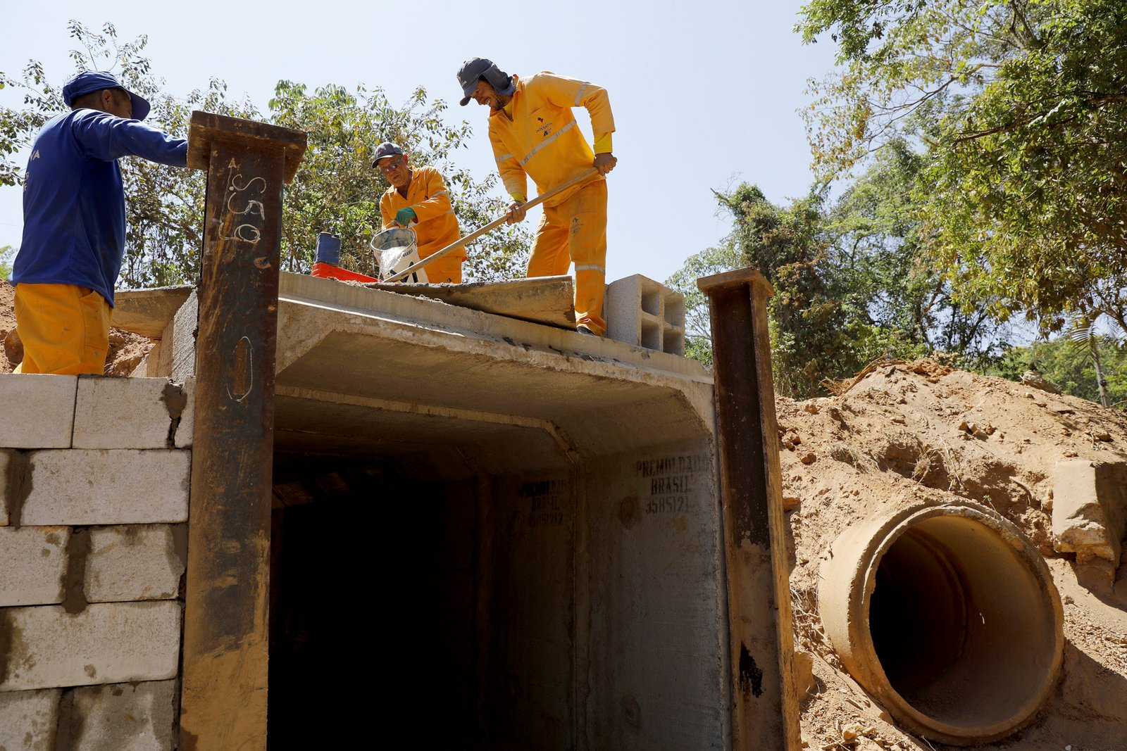 As galerias de passagem de água do Córrego Riacho Frio, em São Sebastião, estão em processo de recomposição. O serviço é fruto de parceria da Administração Regional com a Novacap e o 4º Distrito do Departamento de Estradas de Rodagem (DER), que cederam os equipamentos e o material para a obra.