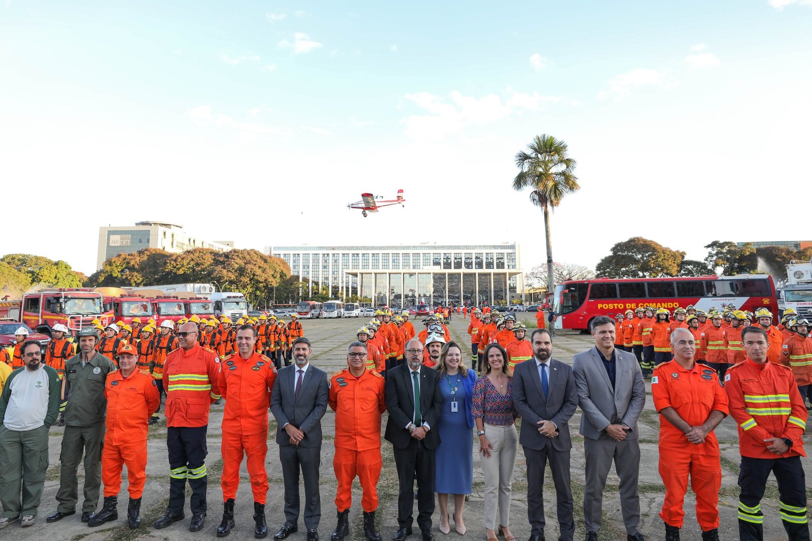 Apresentação da nova fase da Operação Verde Vivo, que vai atuar contra incêndios florestais, foi feita nesta quinta (20), na Praça do Buriti | Foto: Renato Alves/Agência Brasília