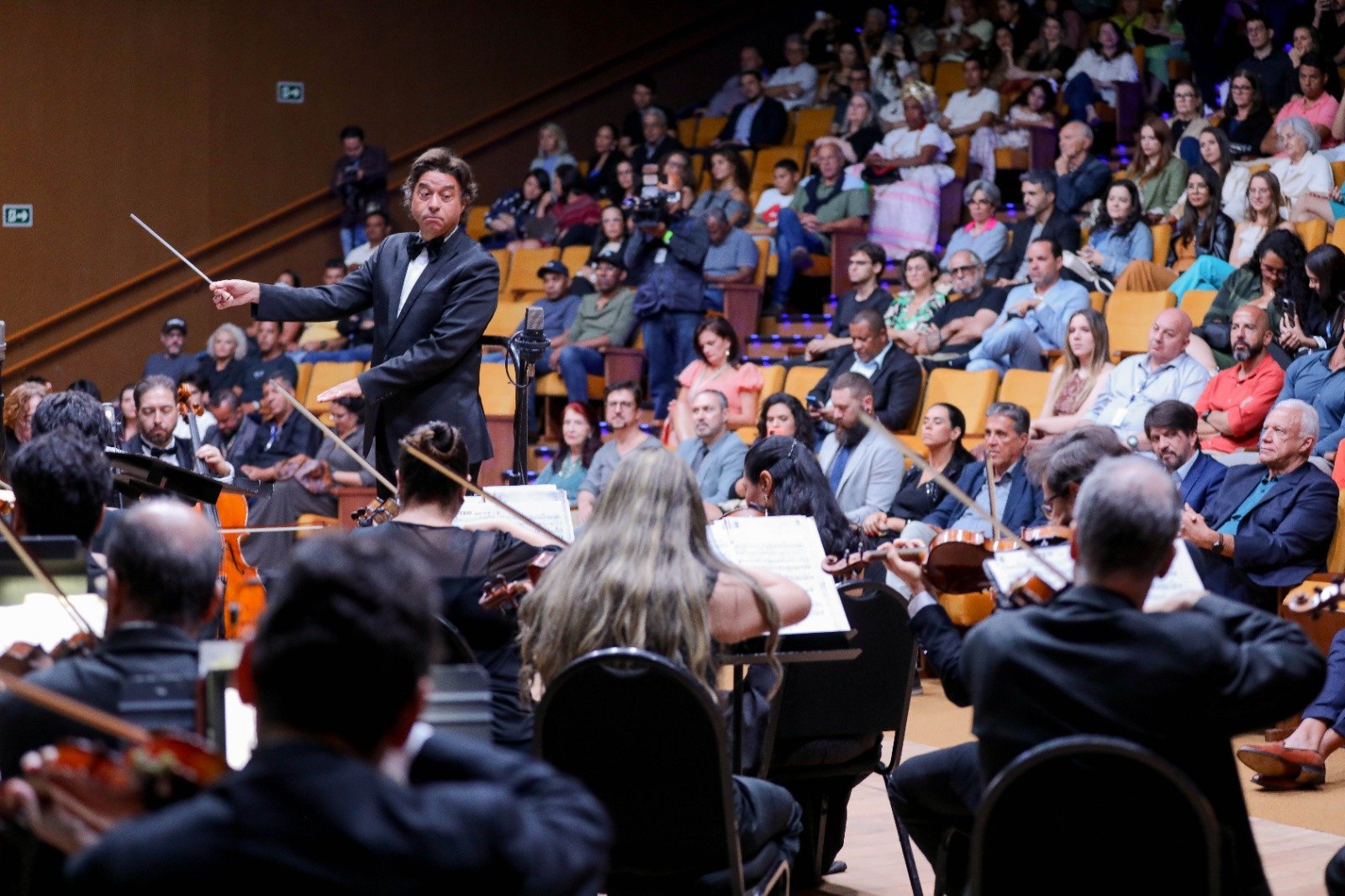 O concerto Sinfonia do Concreto foi conduzido pela Orquestra Sinfônica do Teatro Nacional Claudio Santoro, que voltou ao espaço após 11 anos – a última temporada do grupo no complexo cultural foi em dezembro de 2013.