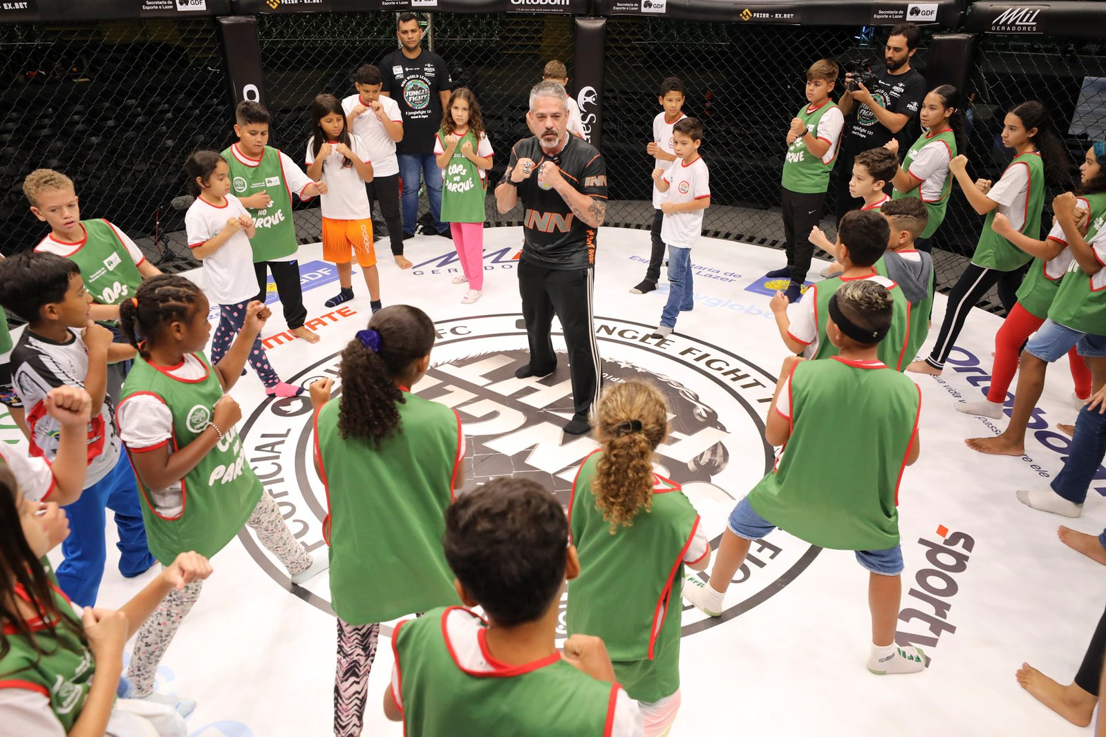 Pequenos atletas dos COPs vivem dia inesquecível com lutadores do Jungle Fight